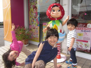 |  | イチゴのペコちゃん発見 かっわいー 従妹のモモちゃんたちと一緒に、ババちゃん家に遊びに行きます。 |