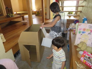 とりあえず眠いので寝ます2013年5月12日 お姉ちゃんとお父さんは、段ボールで何を作っているのかなぁ