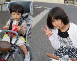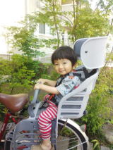 自転車にチャイルドシートを取り付けました。お下がりじゃな新品だよ。お姉ちゃんは大きいから乗れないよ! だから僕専用。