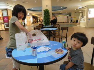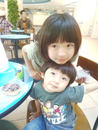 遊んで腹ペコ姉弟は、ドーナツと牛乳