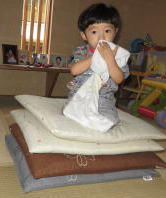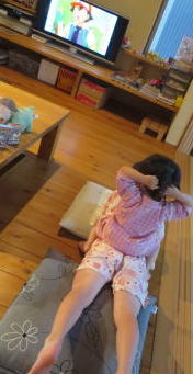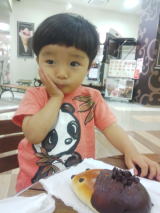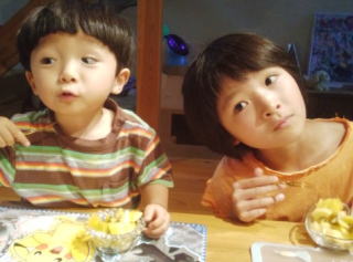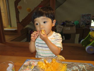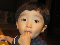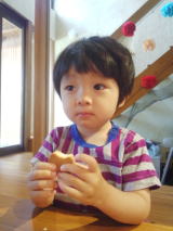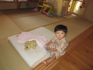 お姉ちゃんのお皿の方がデザート多いんじゃないの?2013年6月27日 ワンちゃんを僕の布団で寝かしつけるために、ご本を読んであげているの。