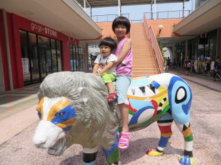 ライオン君に飛び乗って逃げるぞ!・・・という、脱出ゲームは終了して、のんびり遊びましょうね。