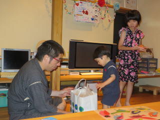 先日、誕生日をしてもらったばかりなのに、またもや沢山のプレゼントで、お父さんHAPPY♪そして、今回も依亜の進行により「父の日会」進められました。