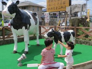 牧場の牛さんを遠くで見ていると、白と黒の猫ちゃんが登場!黒ちゃんは怖がりさんだけど、白ちゃんはゴロンゴロンと触らせ放題です。