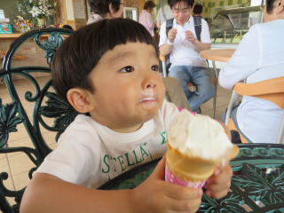 ものすごく暑い日なので、牧場でソフトクリームを食べました。