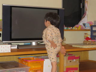 |  | そんなにテレビジョンに近づいたら 電源オフですよ!離れてみなさい!