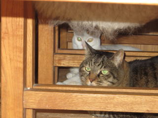 |  | プーさんはスリスリ近寄ってきますが、ココちゃん(手前)とウメちゃん(奥)は子供達から逃げてしまいます。特に緑之助には警戒しているようです。 |
