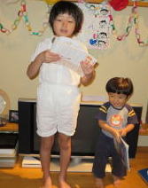 |  | いつものお立ち台に上がり 音読の宿題を披露します。