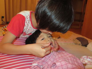 | 仕上げ歯磨きはお姉ちゃん♪ |  |