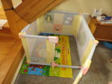 |  | ワンちゃんのお部屋 階段下の土間は、犬を飼うことを想定して設計してもらいましたので、そこに依亜と緑之助が使用していたベビーサークルを置きました。