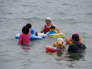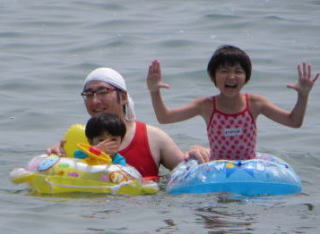 |  | 海で疲れたら、砂浜で遊び、休憩 えっモモちゃんは、また海に入るの!?