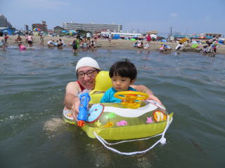 | しかし、初めて「海の家」を使いましたが快適ですね。 大荷物を持って、テントの中で暑い思いをしなくていいし、温水シャワーを浴びれるなんて嬉しいです。お母さんも気に入ってました。 |