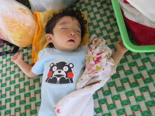 |  | 緑之助は大海原でボートに乗ってプカプカしているのが楽しかったようで、目いっぱい遊んで一足先にお休みです。 |