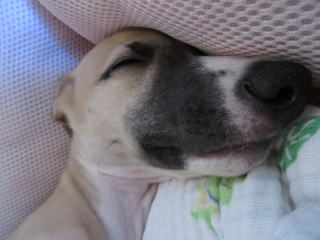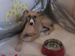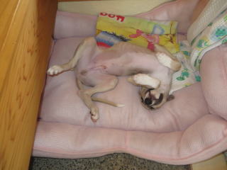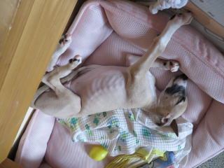 僕はケーキ美味すぎて泣きそう!2013年8月5日 ウィペットという犬種。このように仰向けに寝てたりします。かなり無防備な犬ですね。
