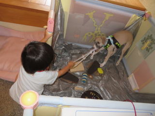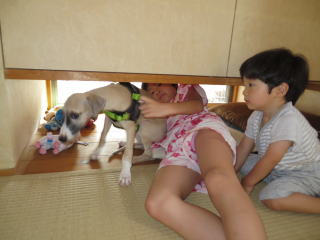一目瞭然だね。お父さんにヘアカットしてもらったので、スッキリしちゃいました。2013年8月19日 SUN君は狭いところに潜るのが得意だね