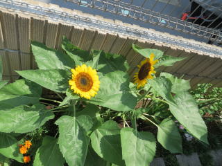 ヒマワリが咲きました。陽が当たりにくい場所だったからか、背は低いけど、可愛いです。依亜→桃花(従妹)→緑之助