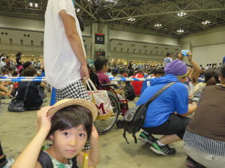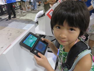 依亜とお父さんの二人で行ってきたよ。ぐえ〜 すごい入場待ちの行列。 これがポケットモンスターの新作ゲームです。依亜はもうゲームソフトを予約しちゃったけど、発売前にいち早く遊ぶことが出来たんだ。