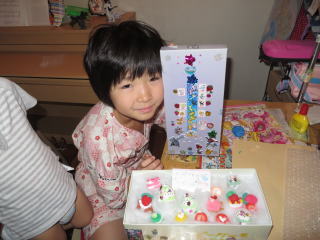 8/18に粘土で作ったケーキを綺麗に箱詰めして、夏休みの宿題が完成しました。