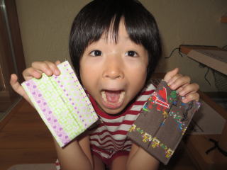 2013年8月28日 手芸教室でティッシュケースを製作しました。初めてのミシンだったけど上手に仕上がりました。 2013年8月29日 僕のご飯、かなり大きな袋ですね。