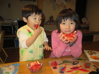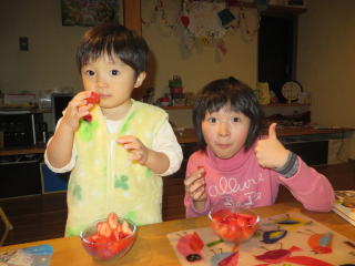 なんとか、ご飯も食べ終わったので、体を動かして遊んじゃうよ!2013年12月3日 イチゴの季節だね。