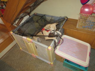 これがボクの新しいお家のようです。この後、頑丈な屋根も付けられてしまい、脱走することが出来なさそうです。