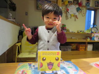 会社からお父さんが合流し、一緒に帰宅出来ました。2013年12月29日 サンタさんにもらったジグソーパズル(ポケモン)が完成しました。