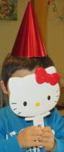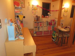 私は誰? そうキティちゃんよぉまだ子供部屋は仕切り壁がありませんので、依亜と緑之助の部屋の間にテーブルを置いて、2人で使います。
