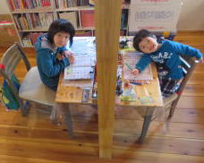 お父さん、子供部屋の掃除だけではなく、模様替えまでしてくれました。依亜の机は緑之助と半分こすることにし、部屋の真ん中に移動されました。