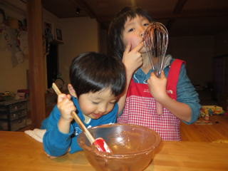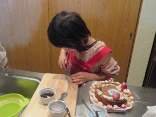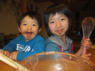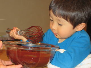 緑之助は「ロクもオベンキョするぅ」とお絵かきしておりますが、依亜ちゃんのお勉強は邪魔しないでね。依亜ちゃんのケーキ作りが始まりました。 横で眺める緑之助は、完成まで我慢できず、チョコレートをつまみ食い。