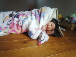 2013年12月26日 ママババから 毛布(ディズニー柄)が届きました。二人はフカフカ毛布がとても気に入ったようです。
