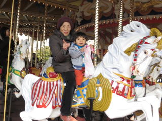 緑之助のお気に入りはメリーゴーラウンド。依亜ちゃんがピアノの発表会で弾いたチムチムチェリーの歌が流れるので、より一層ゴキゲンです。