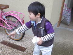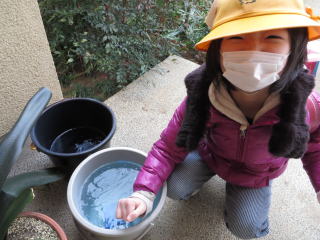2014年2月6日 お外のバケツの水が凍っているよ