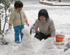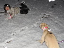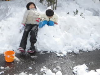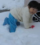 雪遊びしようよ鼻水が出たって、背中に雪が入って冷たかろうと、へっちゃら へっちゃら