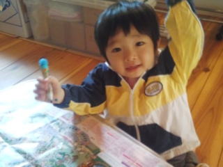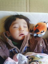 一口 オニギリの朝ごはん2014年2月21日 お昼寝することが少なくなってきたものの、遊んで疲れたら、やはり眠くなるようです
