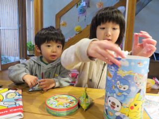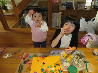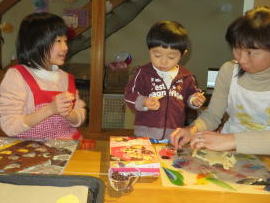 型抜きで形を作って お顔を書いたり、2色でマーブルを作ったり みんなで楽しく作れました もちろん美味しい!! 2014年2月23日 カラフルな小麦粘土