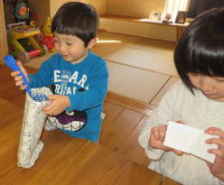 幼稚園で使う上履き袋のプレゼントが届いたよ