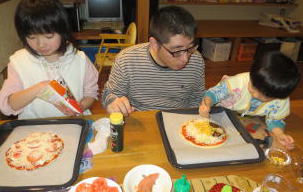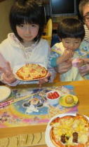 ロクノスケは初挑戦、イアは手慣れたものホラ 具沢山の美味しいピザの出来上がり