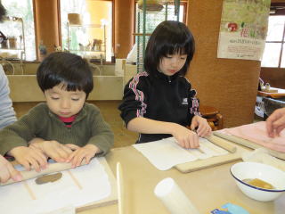 くんくん いい匂いがするねさて、この公園の一角では工作が楽しめます