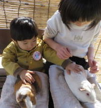 お馬さんに乗ったり、羊や山羊を追いかけたり、モルモットを抱っこしたり