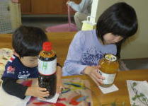 緑之助はお父さんと一緒にカメさんをモチーフとした絵柄を完成させました