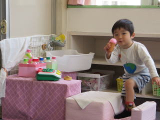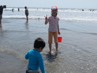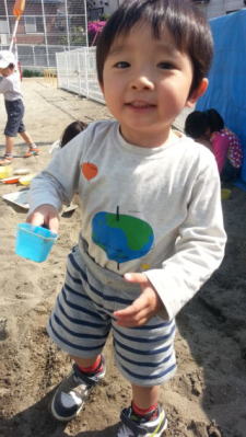 おままごとをしていたかと思えば、お外に出て初対面のお兄ちゃんとお砂場遊びを楽しみました。