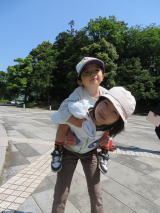 偶然にも小学校のお友達にもあえて、一緒に乗り物に乗ることができました。依亜ちゃんとお母様、遅いね