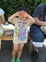 子供は入場無料。Tシャツをもらって中に入ったと思ったら、かき氷もいただきました。