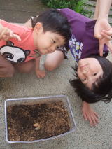 依亜が学校の実習でカブトムシの幼虫をいただいてきました。