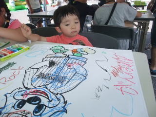 日本ハムファイターズのファーム球場ですが、1軍以上に地域に根ざしたイベントが開催されています。キャラクターぬりえ。応援旗をつくります。