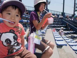 さてさて、こんなに楽しませてもらったのに、試合開始早々「帰りたーい」「暑ーい」「お腹へった」の合唱です。お父さんはもっと観たいのに、仕方ない帰宅いたします。