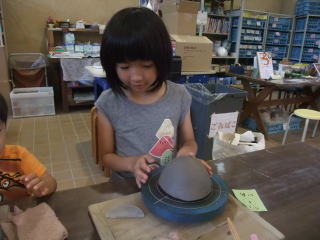 | 粘土を御椀型にして、脚を付けて、着色したら、あとは数カ月後の焼き上がり待つだけです。