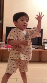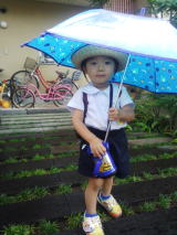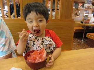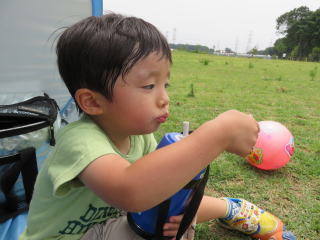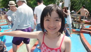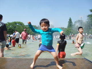 |  | 走り回った依亜がプールからあがっても、緑之助はなかなか水遊びが終わりません。 そろそろ帰りますよ〜