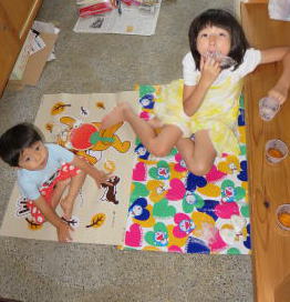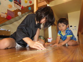 | 午後からは児童センターへ 依亜は工作、緑之助はおままごと