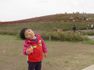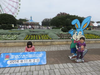 最近のお気に入り「ドラえもん」のパズルをバザーで購入し早速広げて遊んでいます。2014年11月2日 曇天ですが国営ひたち海浜公園にやってきました